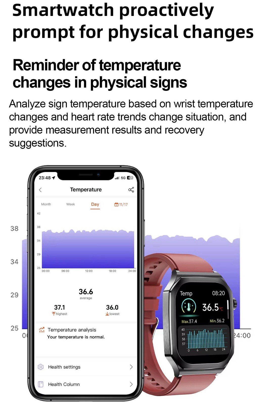Screen resolution: 368 448 HD AMOLED. Screen Type: AMOLED. ECG chip: 512HZ precise high-frequency GR3220. Blood oxygen: (Osram) 2703+GR3220. gravity sensor: ST8321. Bluetooth: 5.3BLE (low power consumption).