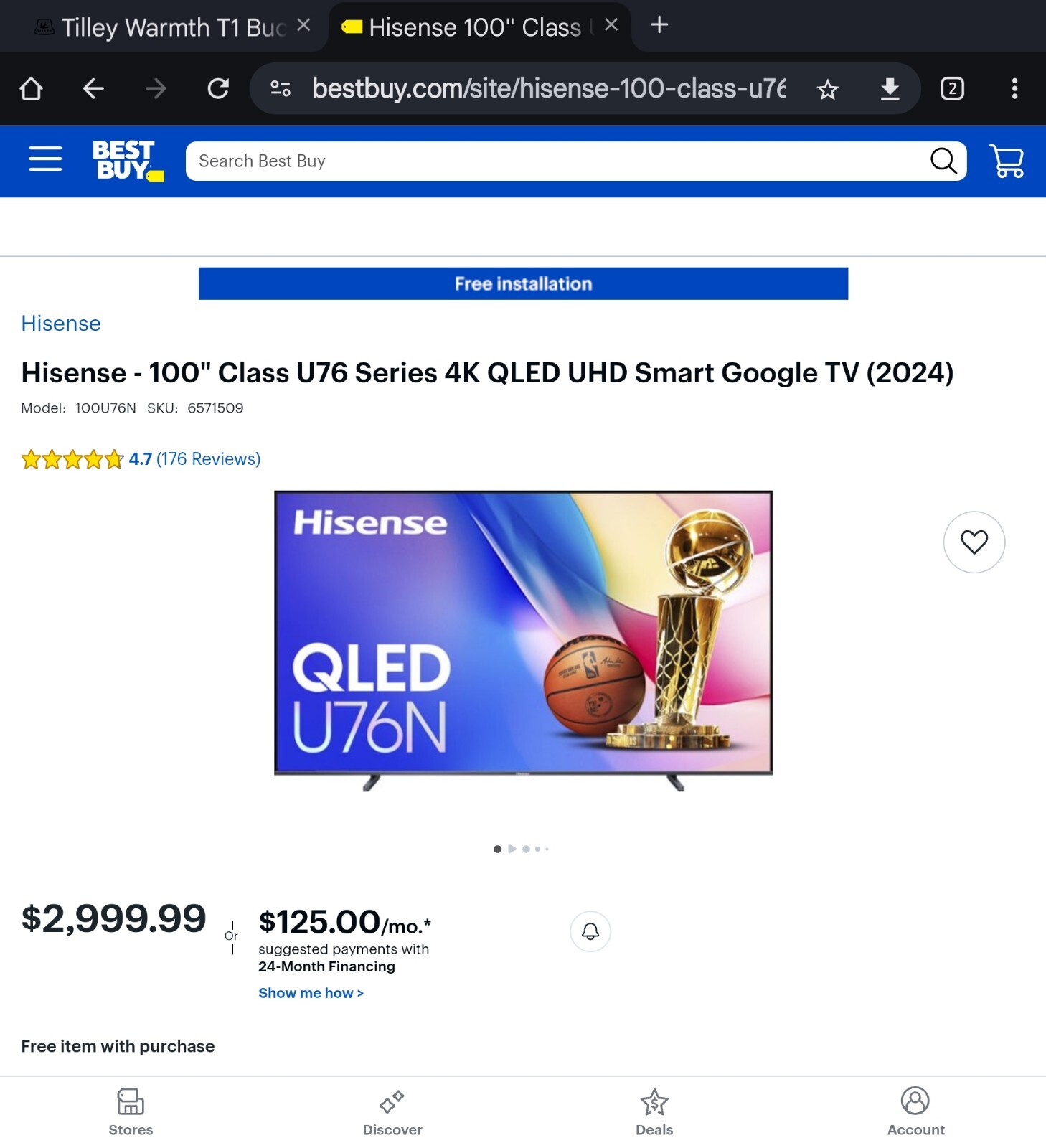 Hisense - 100" Class U76 Series QLED 4K UHD Smart Google TV USED