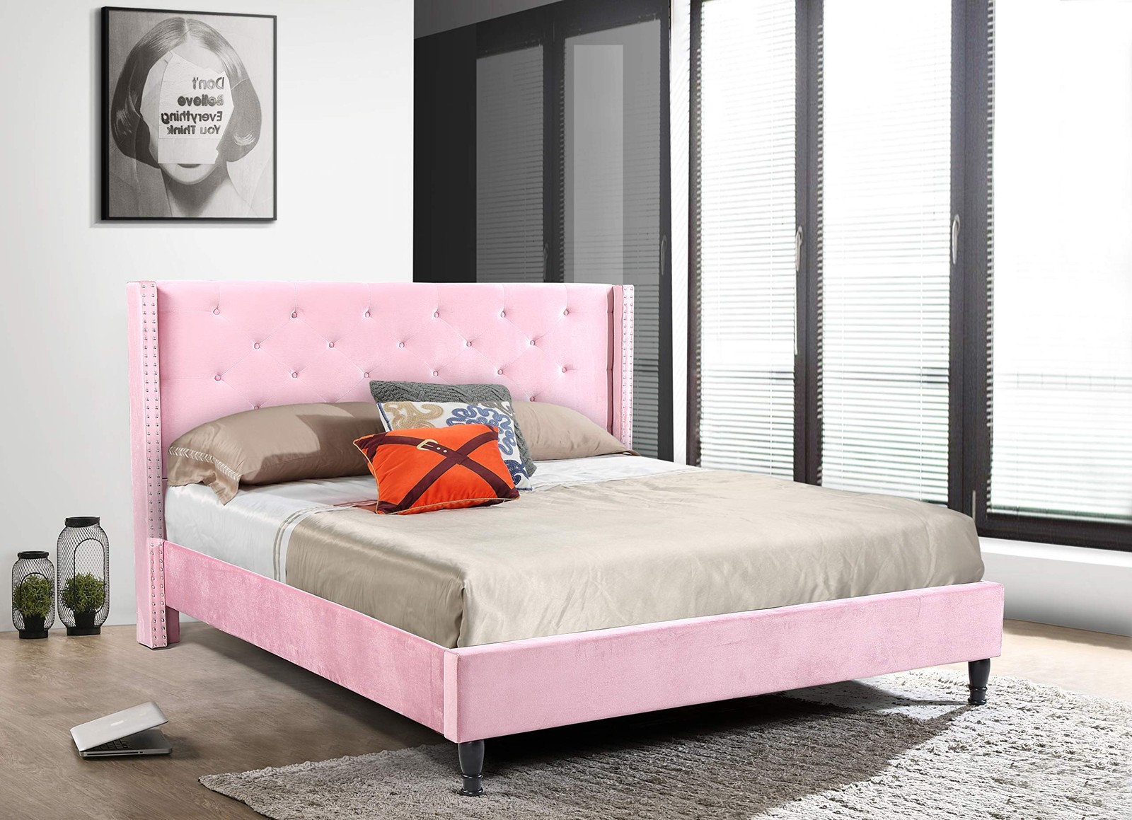 Home Life furBed00007_Suede_Queen_Pink Platform Bed
