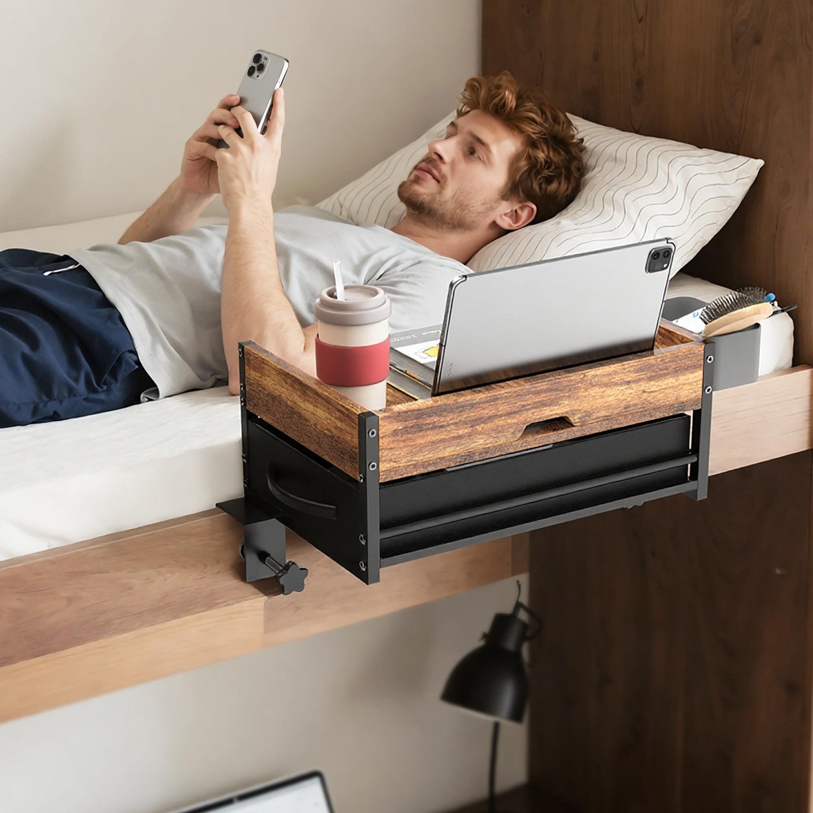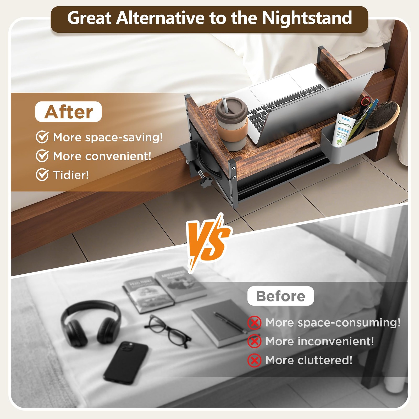 【Newest Nightstand Design with Drawer】This bed shelf features with fabric drawer, provides an instant nightstand or desk while saving floor space. The caddy tray is incredibly versatile, serving as a headboard shelf, sofa tray, changing table, or cord organizer.