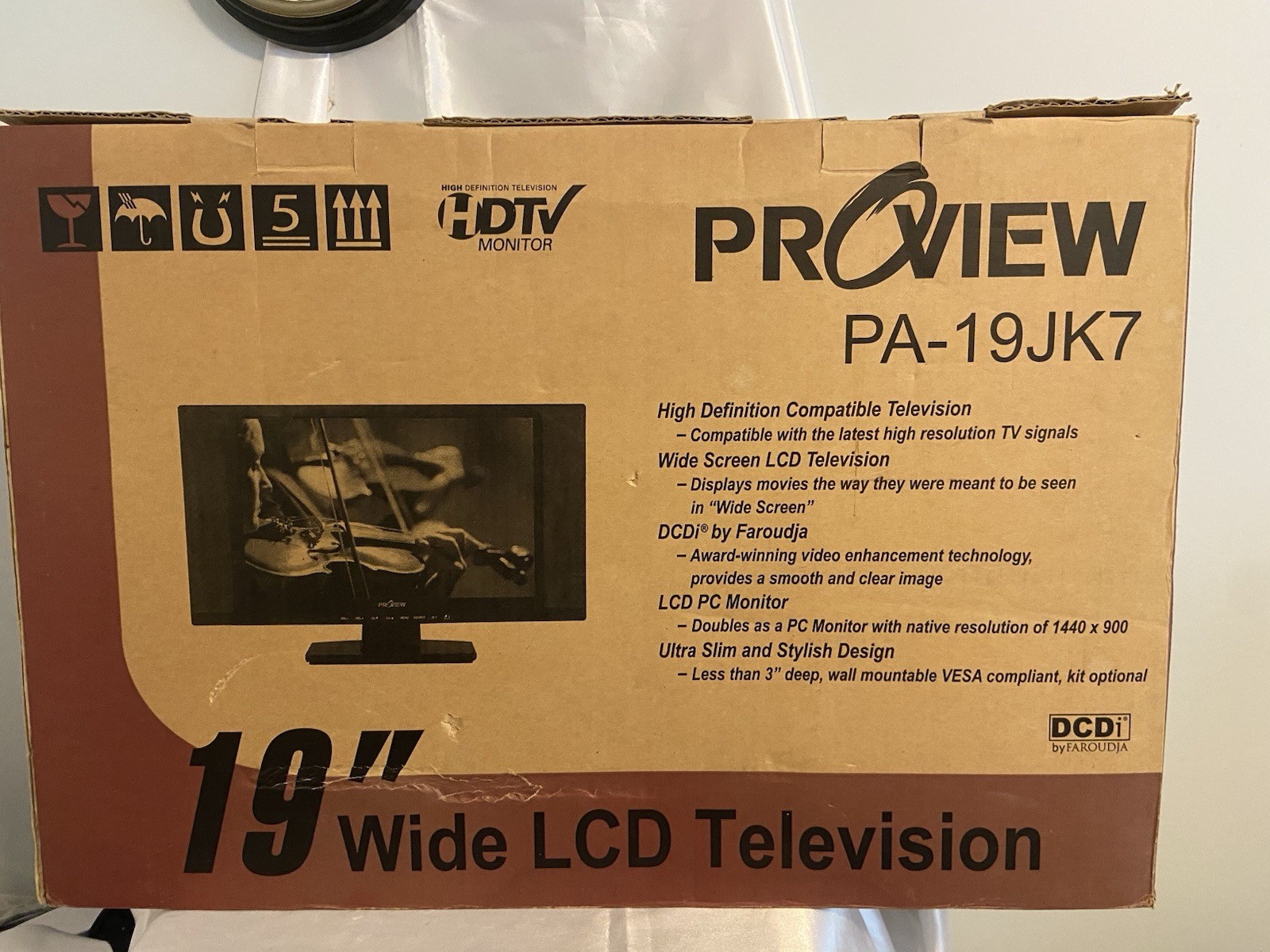 Proview 19” LCD/HD TV/monitor W/remote Cords PA-19JK7 New