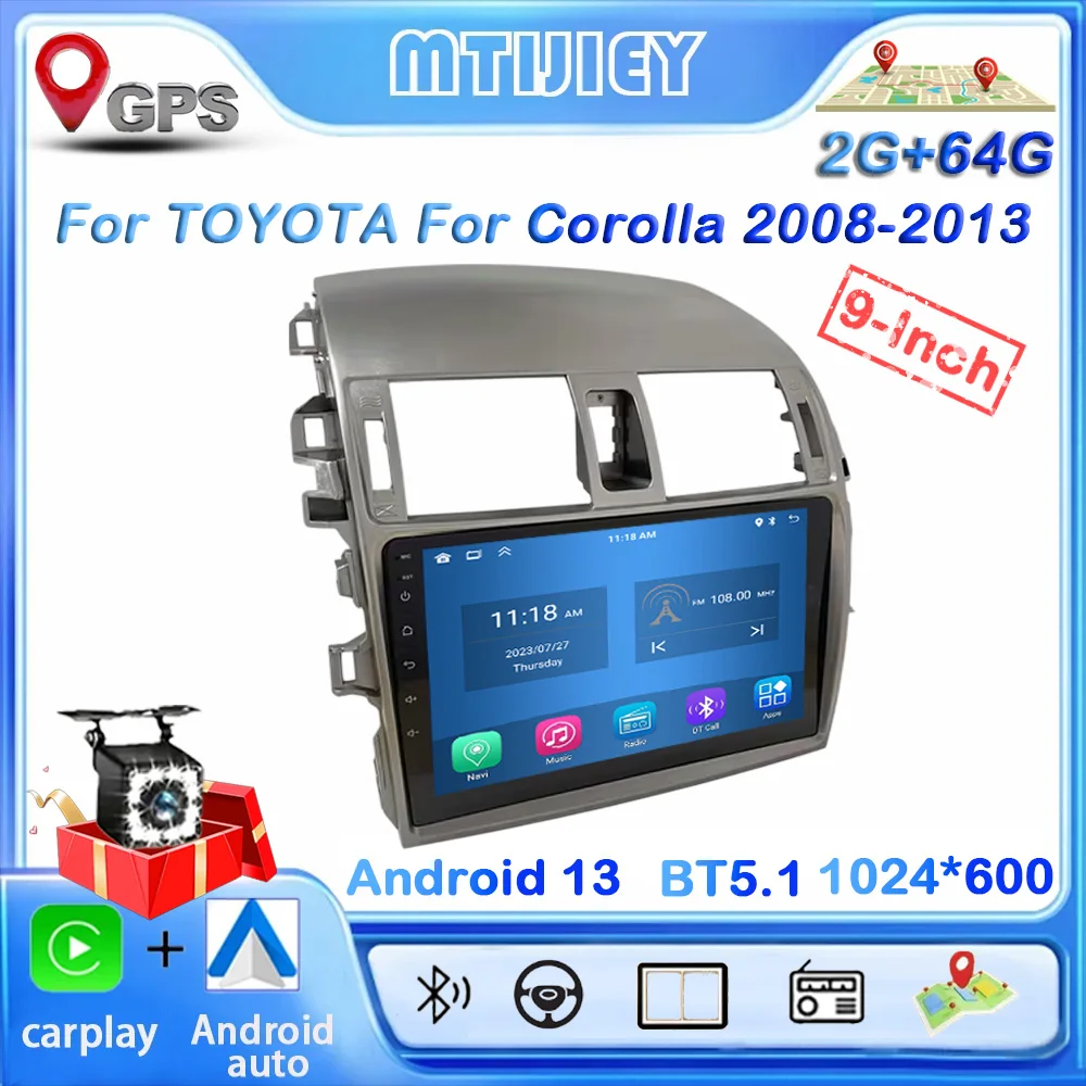 2+64G Android 13 Car Stereo Radio Multimedia Player Bluetooth GPS Head Unit WIFI Carplay Auto For TOYOTA For Corolla 2008-2013 $141.24