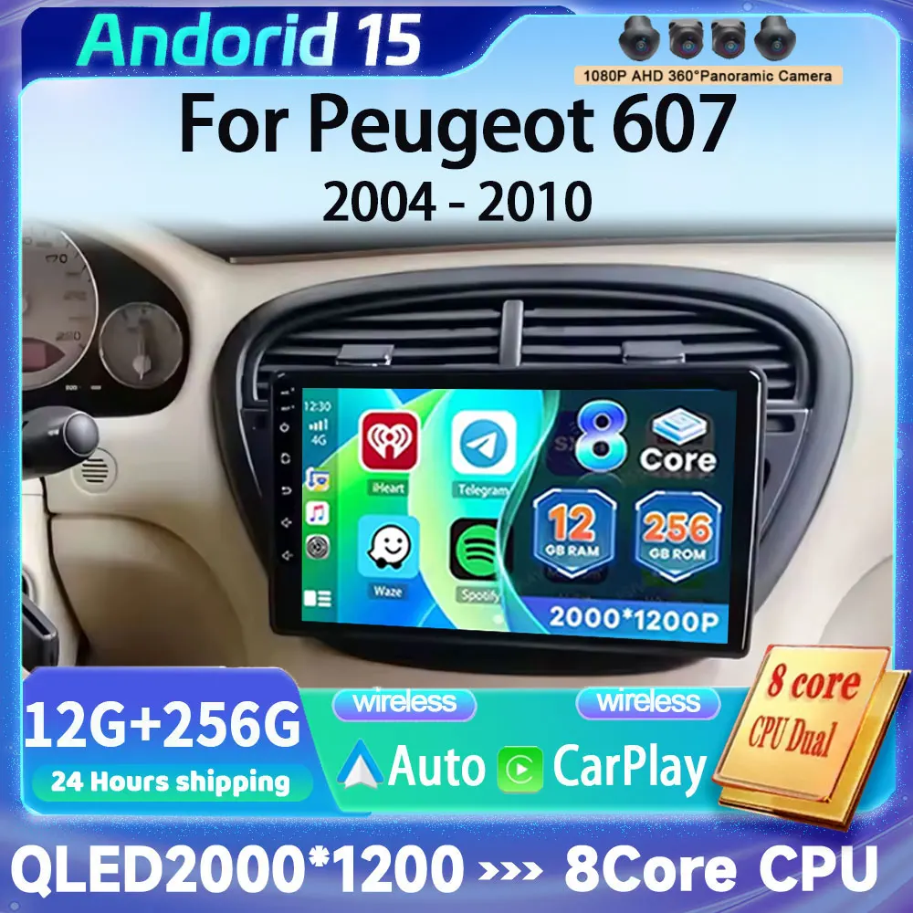 Android 15 CarPlay Auto 12+256GB For Peugeot 607 2004 - 2010 Car Radio Multimedia Video Player GPS 4G WIFI Head Unit stereo BT $84.31