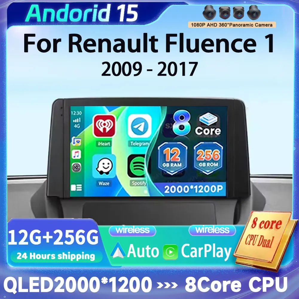 Android 15 For Renault Fluence 1 2009 - 2017 Multimedia Monitor Carplay Auto WIFI Navigation Player Video Stereo GPS Radio QLED $88.76