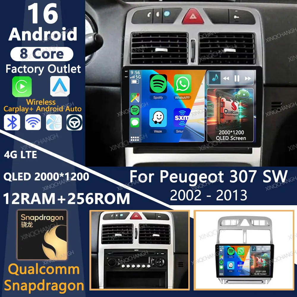 Android 16 Car Radio For Peugeot 307 307CC 307SW 2002 - 2013 Multimedia Video Player Qualcomm 2DIN GPS Head Unit BT QLED 4G WIFI $118.35