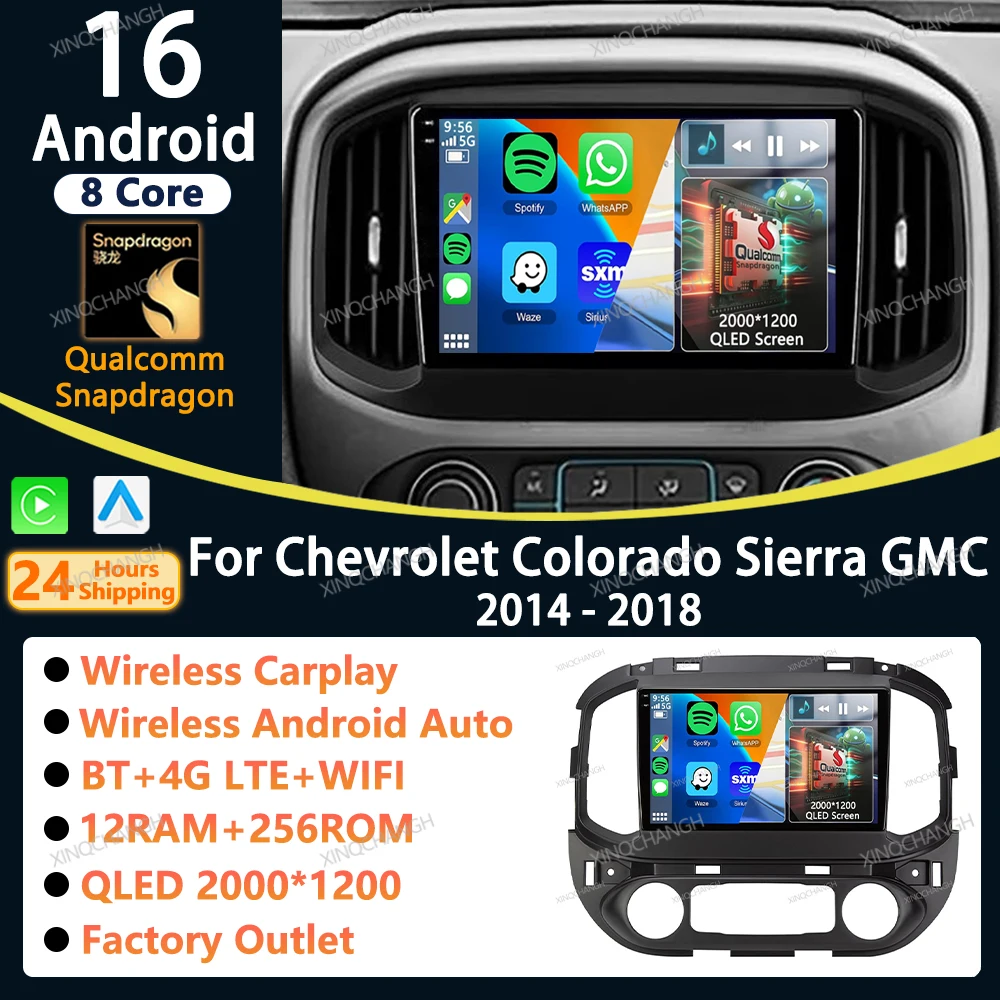 Android 16 Car Radio Carplay Auto For Chevrolet Colorado Sierra GMC 2014 - 2018 Head Unit Stereo Dash Fitting Panel Kit Player $143.00