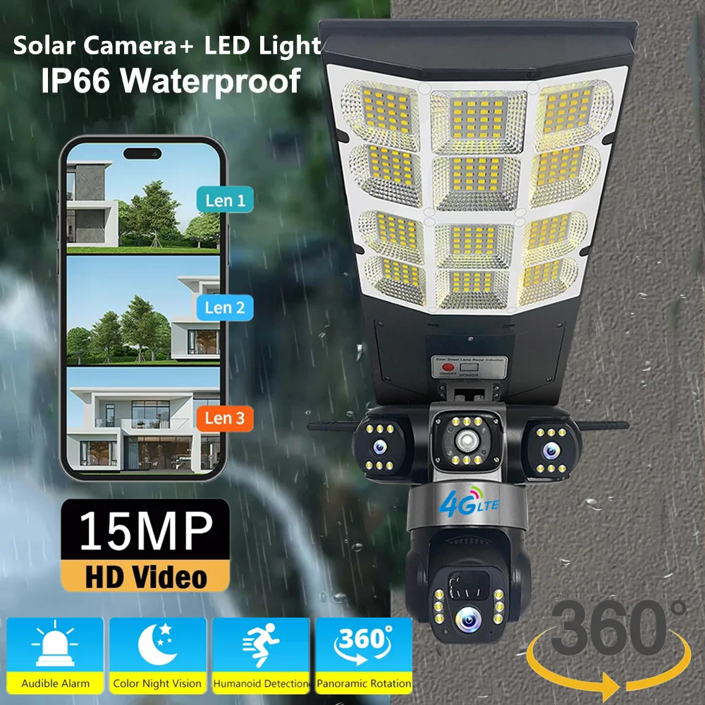 4G Solar Camera with LED Lamp CCTV,Three Lens Remote Control Phone,15MP Outdoor Wireless IP Cam Two Way Audio Call PIR Detection $85.80