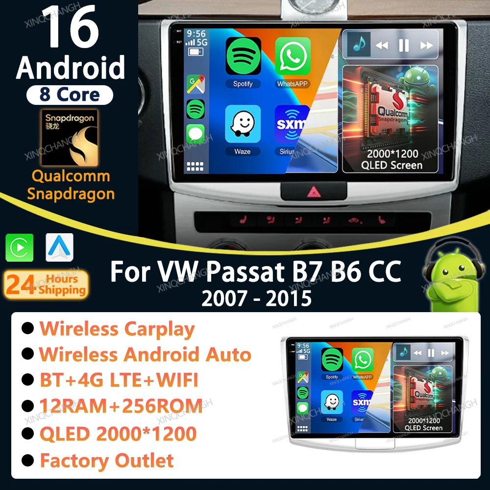 Android 16 Car Radio Carplay Auto For Volkswagen VW Passat B6 B7 CC 2007 - 2015 QLED 4G WIFI GPS Multimedia Stereo Video Player $118.35