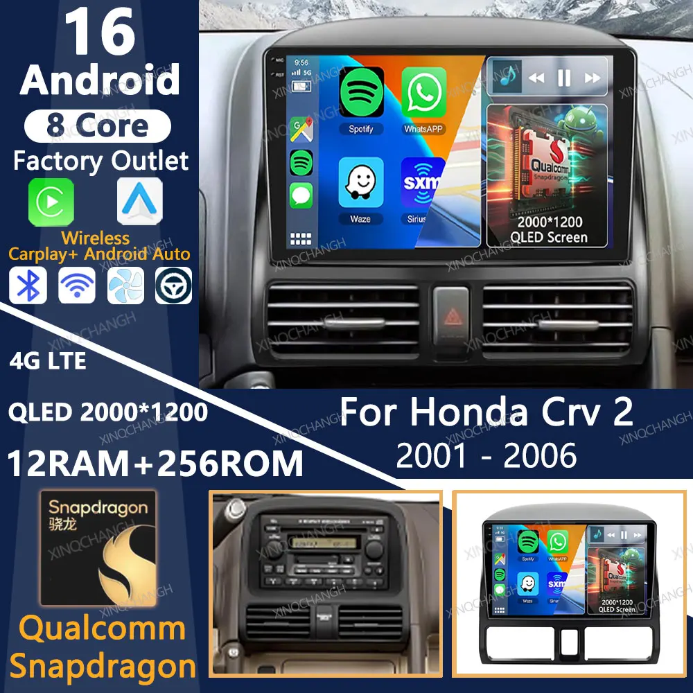 Android 16 Car Radio For Honda CR-V CRV 2 2001 2002 2003 - 2006 Head Unit 4G LTE 5G WIFI GPS Multimedia Stereo Video Player QLED $118.35