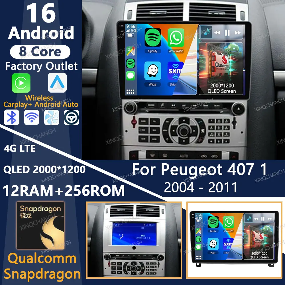 Android 16 Car Radio For Peugeot 407 2004 - 2011 QLED Multimedia Video Player 2DIN Head Unit 4G LTE 5G WIFI BT Carplay Auto GPS $118.35
