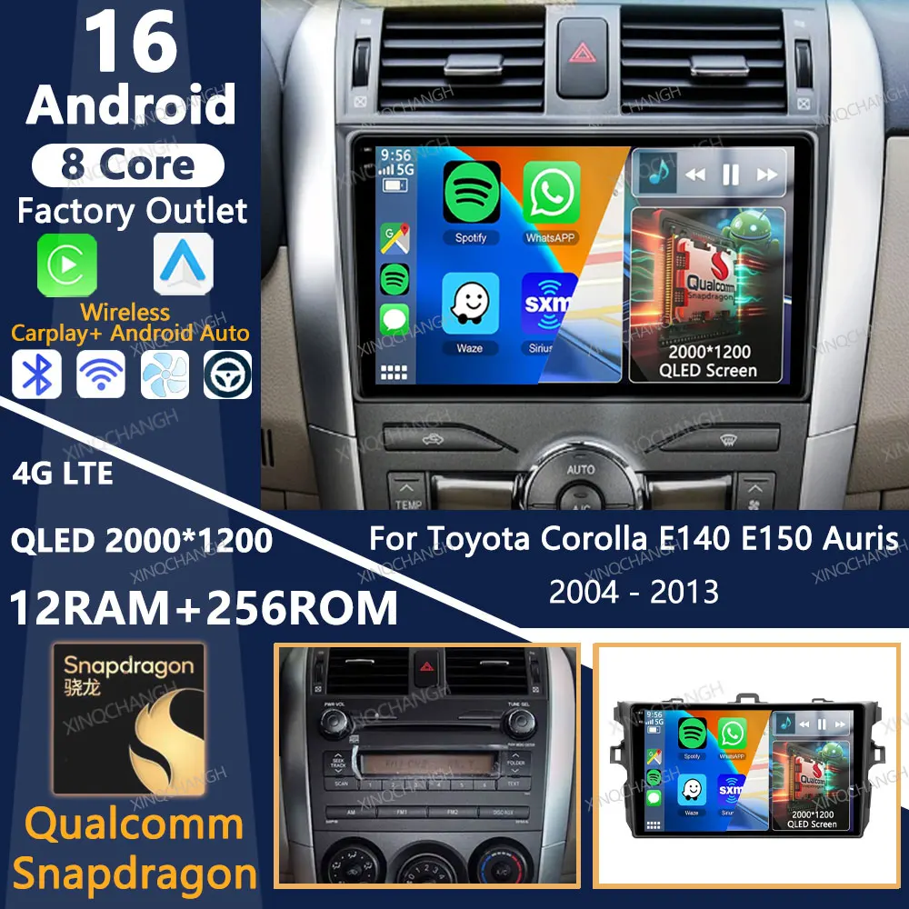 Android 16 Car Radio For Toyota Corolla E140 E150 2006 2007 - 2013 Multimedia Video Player Qualcomm 4G LTE 5G WIFI 2DIN GPS QLED $118.35