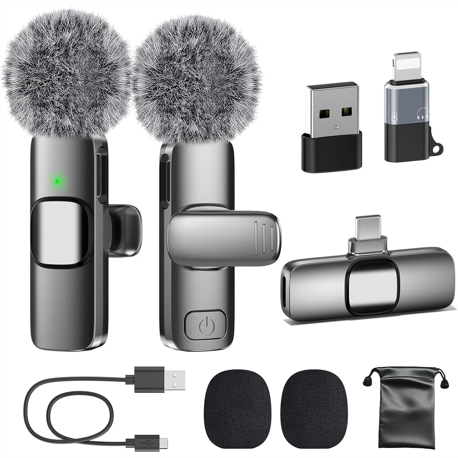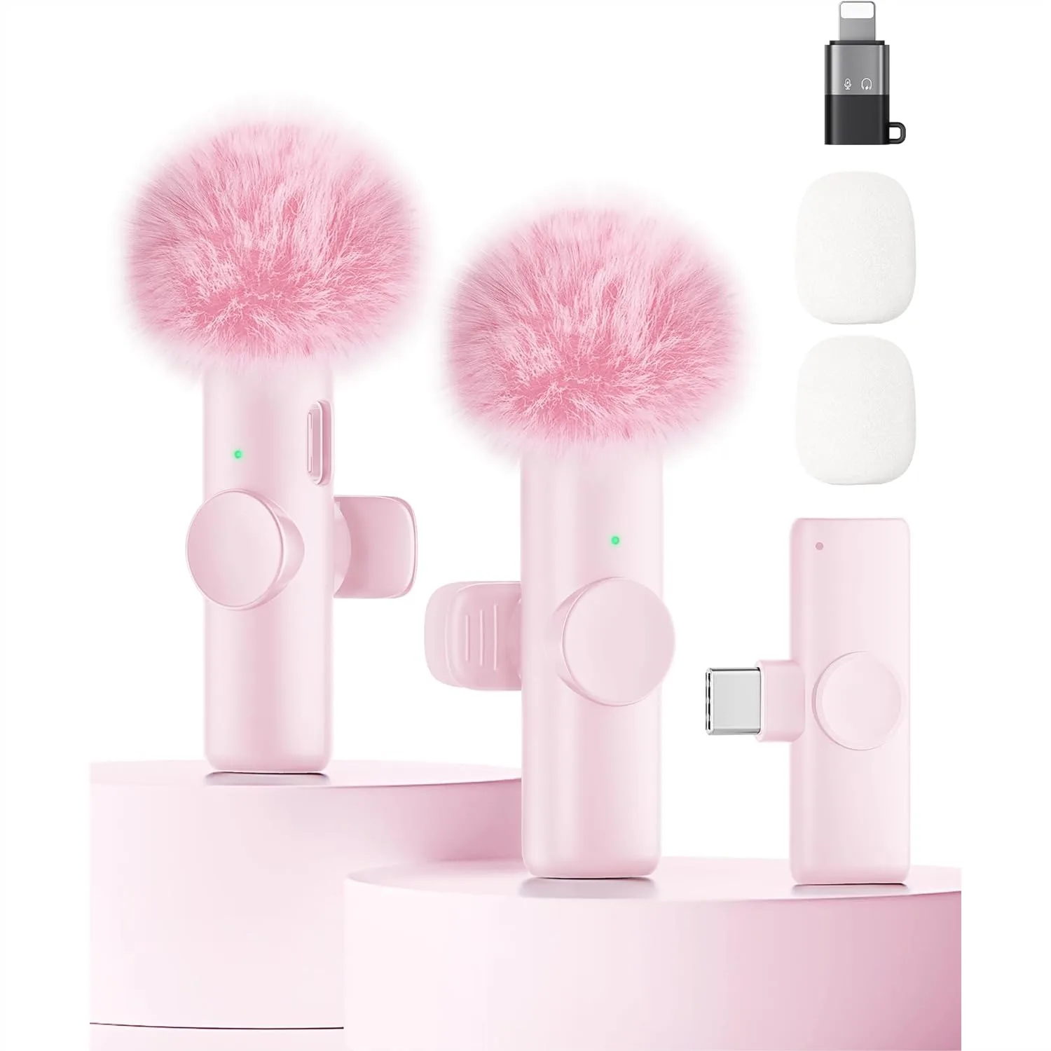 Wireless Microphone for iPhone iPad Android, 2 Pack Lavalier Mic with Noise Reduction, Plug and Play for Video Recording $20.70