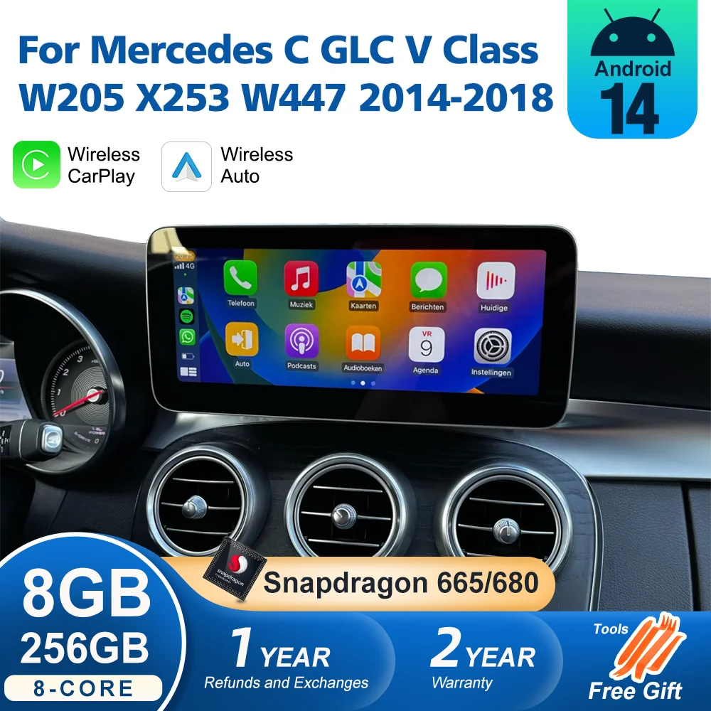 256G Qualcomm 680 Wireless CarPlay For Mercedes Benz C Class W205 2014-2018 Android Auto Car Multimedia Navigation GPS SWC DSP $433.16