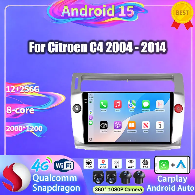 2 Din Android 15 Car Radio For Citroen C4 C-Triomphe Quatre 2004-2014 Multimedia Video Player GPS Carplay Auto Stereo Head Unit $136.45