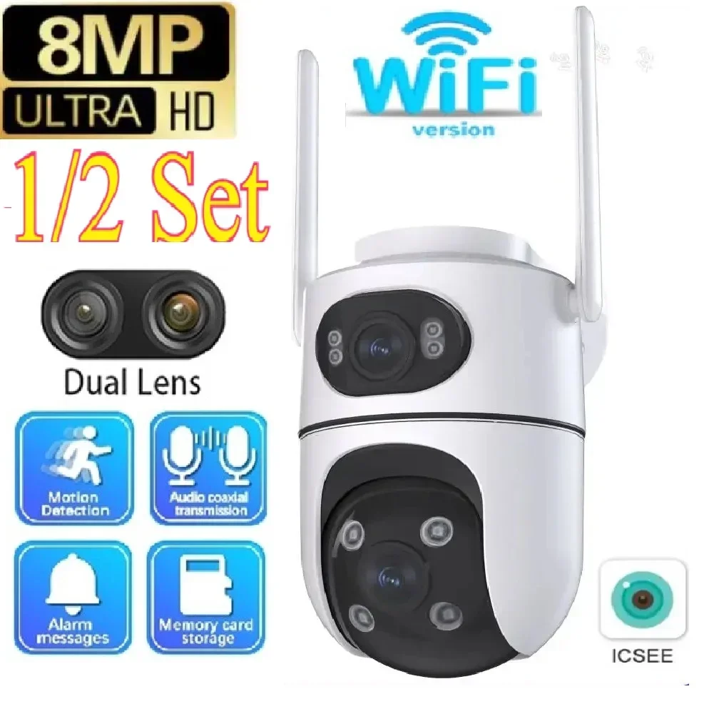 1/2 Set HD Wifi Camera Dual Lens Night Vision IP Camera PTZ 4K 8MP Human Detection Security Protection Surveillance Dual Screen $33.16
