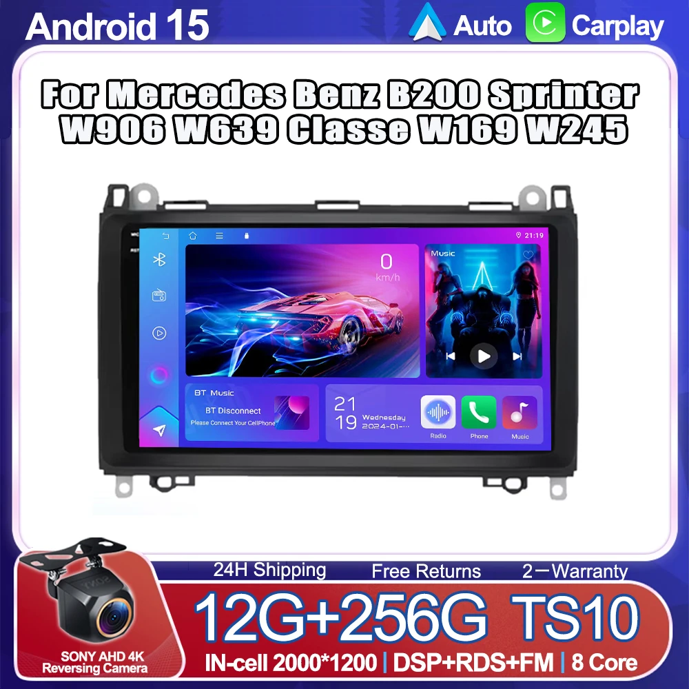 Android 15 Car Radio Navigation GPS For Mercedes Benz B200 Sprinter W906 W639 Classe W169 W245 Multimedia Video Player No 2din $88.65