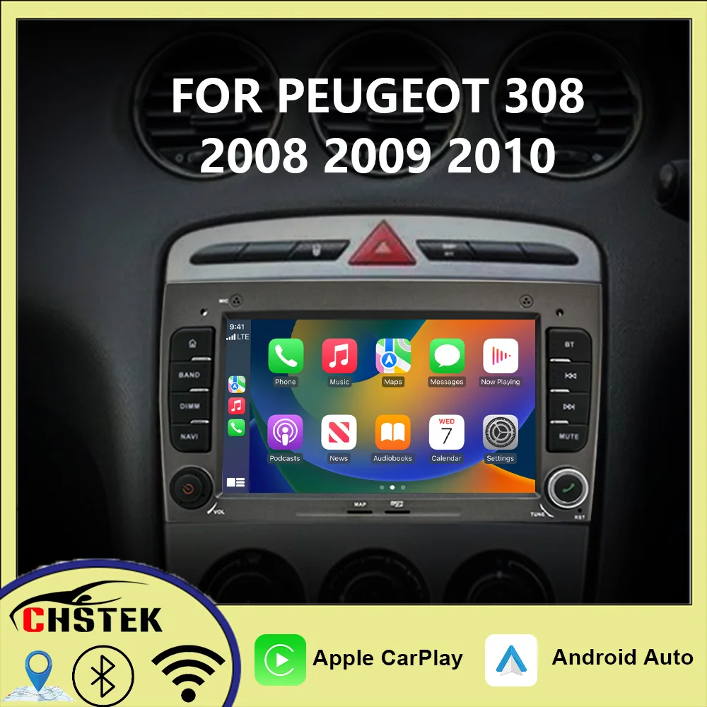 CHSTEK Car Radio Wireless Carplay Android Auto Bluetooth For Peugeot 308 2008 2009 2010 Multimedia WIFI Vedio Player Navigation $161.02