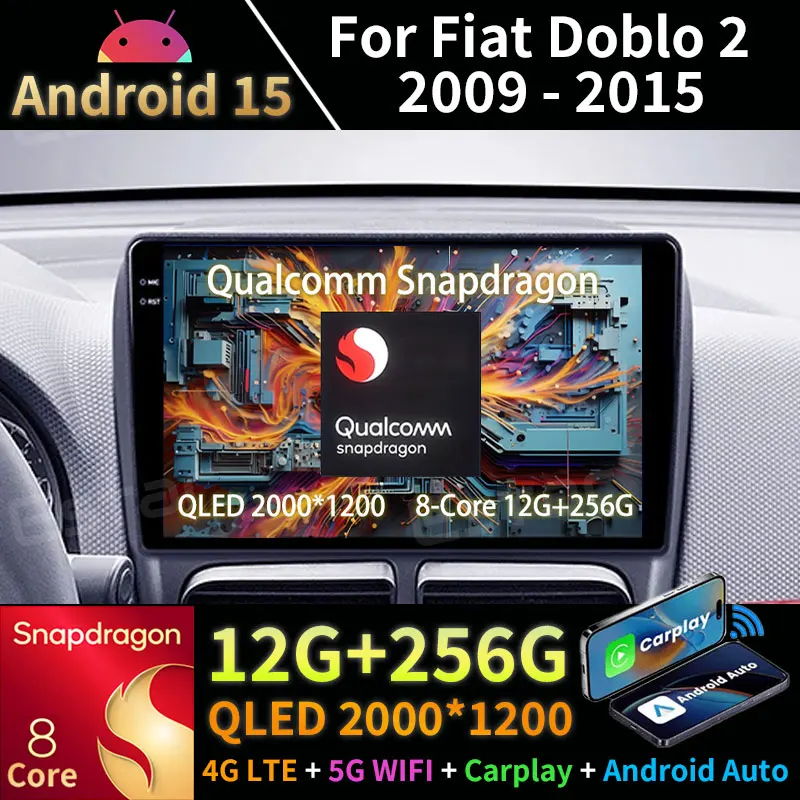 Android 15 Carplay For Fiat Doblo 2 II 263 2009 - 2015 GPS Multimedia Video Player Navigation Head Unit Stereo 2din BT Car Radio $118.20