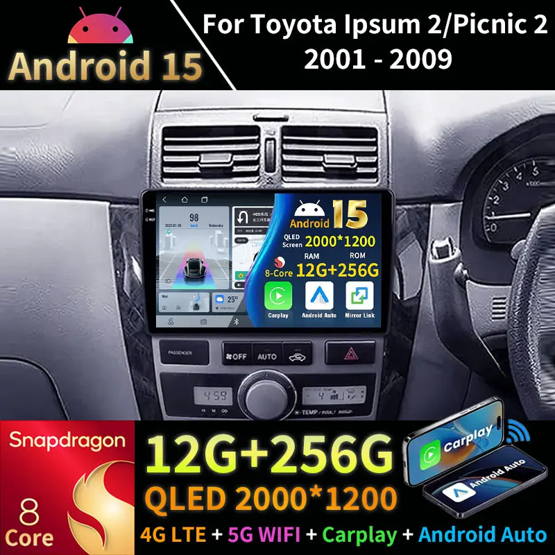 Android 15 Car Radio For Toyota Ipsum 2 ACM20 Picnic 2 XM20 2001 - 2009 Video GPS Multimedia Player Navi Head Unit Stereo DSP BT $113.06