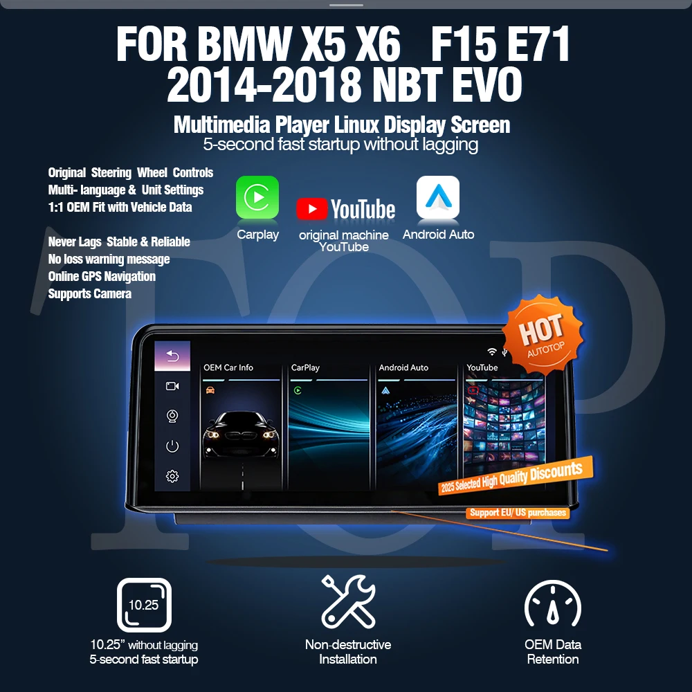 AUTOTOP 10.25" Youtube wireless carplay android auto multimedia radios touchscreen For BMW X5 F15 X6 F16 2014-2018 nbt evo,GPS $251.80