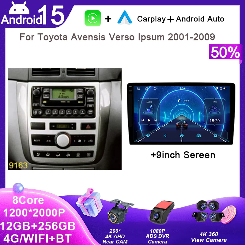 For Toyota Avensis Verso Ipsum 2001-2009 Video Player Android Auto Car Radio 4G/WIFI GPS Navigation Multimedia Stereo Carplay $84.02