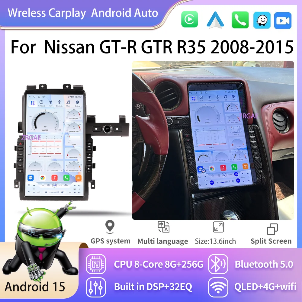 13.6'' Android 15 Carplay Car Radio For Nissan GT-R GTR R35 2008-2015 Multimedia Player Stereo Upgrade Tesla Style Navigation BT $1,100.72