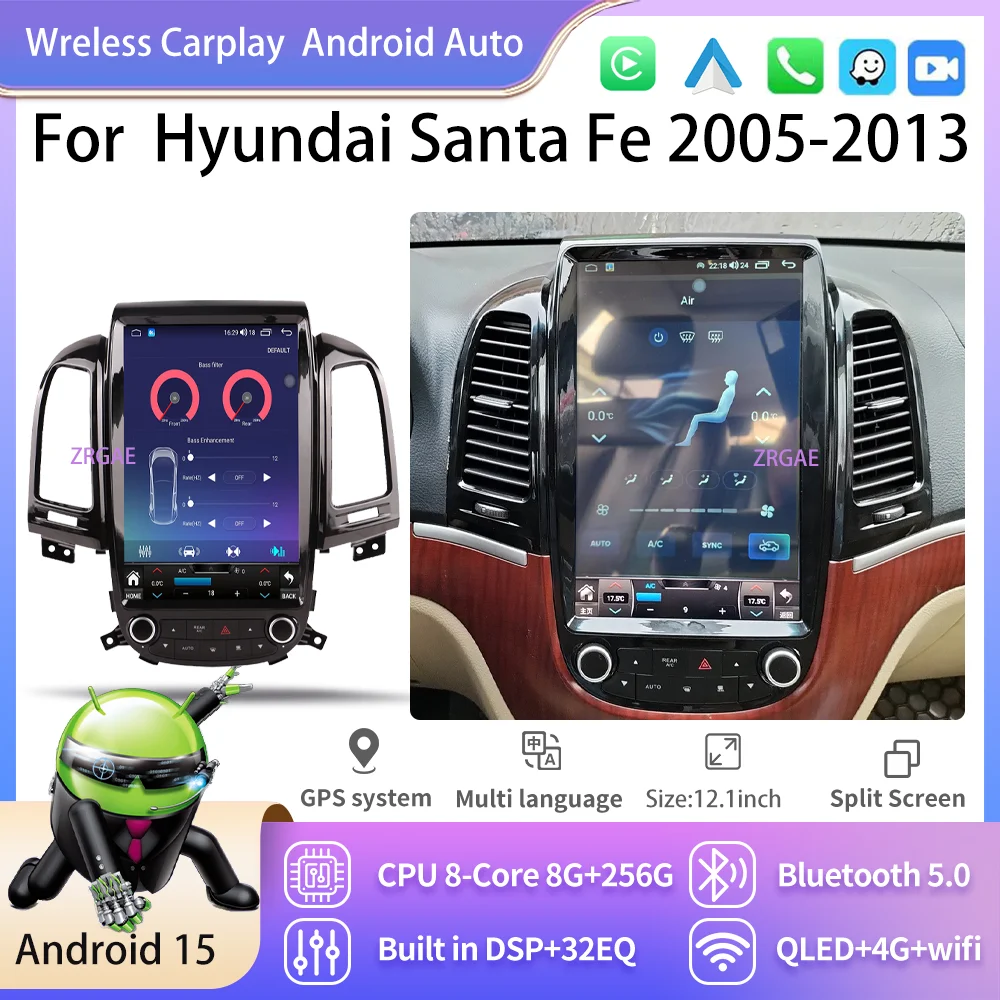 12.1" Car Radio Android 15 For Hyundai Santa Fe 2005-2013 GPS Carplay Multimedia Player Tesla Screen Stereo Auto DSP Navigation $450.82