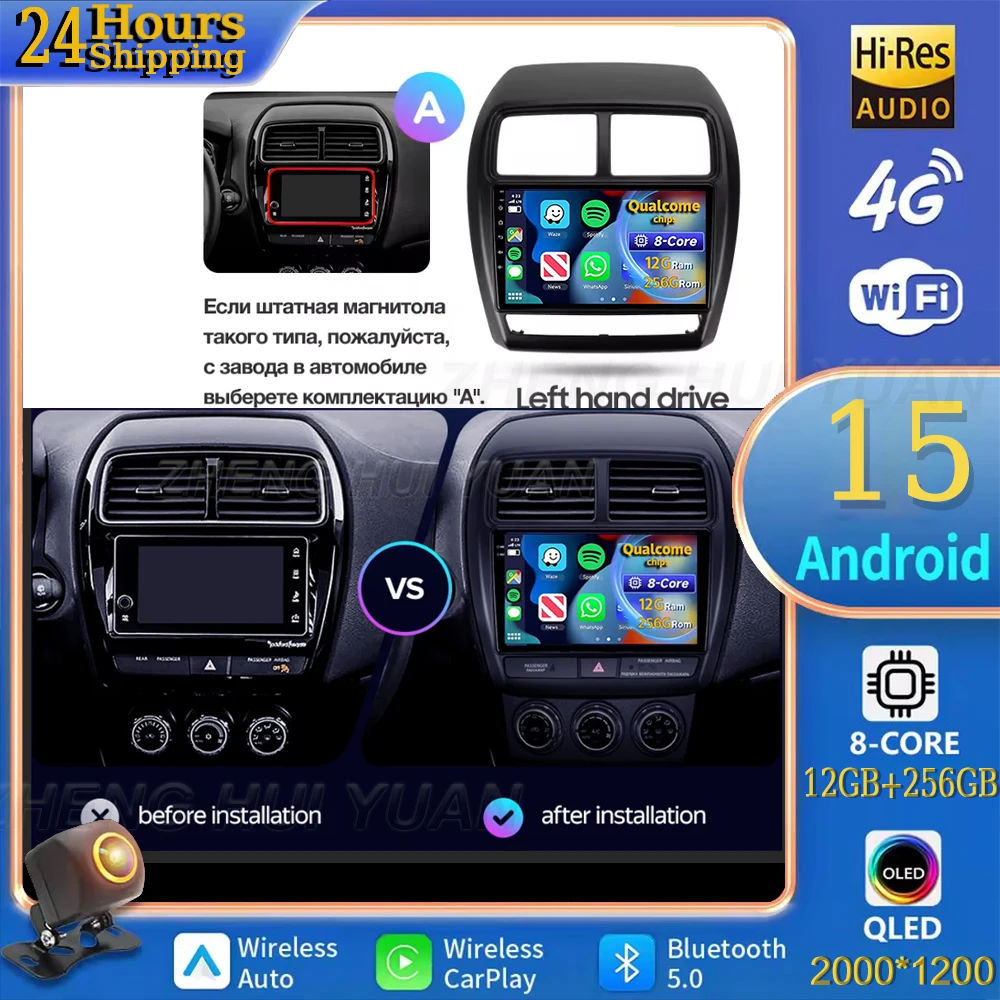 For Mitsubishi ASX 1 2016 - 2023 Android 15 Car Radio Multimedia Player Android Auto Carplay Head Unit Navigation GPS WiFi RDS $91.03