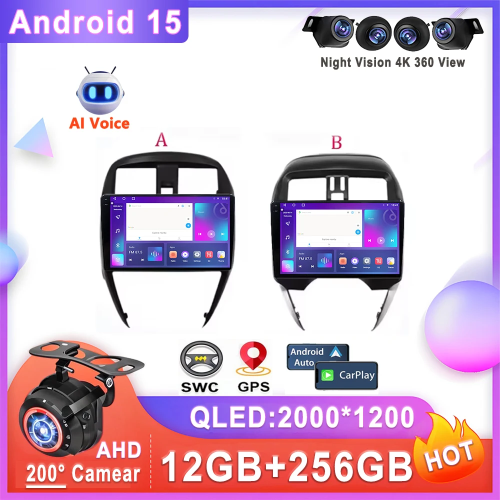 Car Radio Android 15 For Nissan Micra K13 March K13 2013-2017 Multimedia Player No 2din DVD Stereo Head Unit QLED Screen 2K 5G $91.47