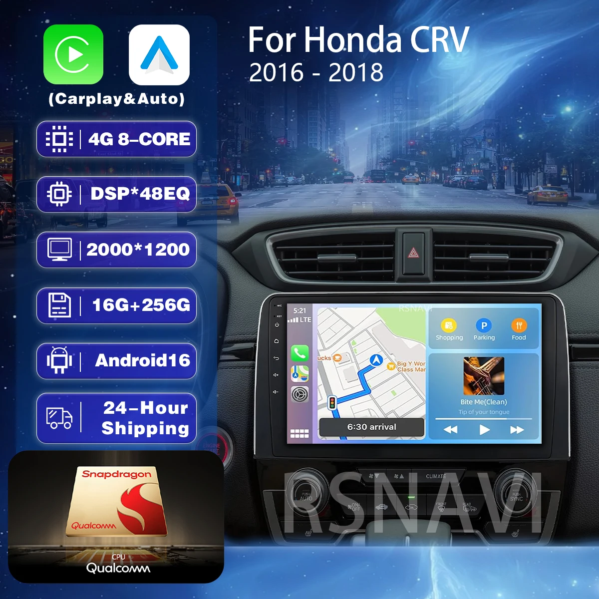 RSNAVI Android 16 Carplay Car Radio Multimedia Player For Honda CRV CR-V 5 RT RW 2016 - 2018 Autoradio Stereo 2din Head Unit BT $85.40