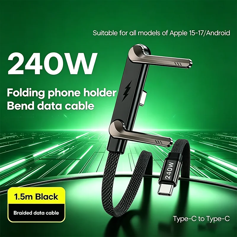 240W PD Fast Charging Type-C to Type-C Cable USB C to Type-C Cable with Foldable Stand Phone Holder For iPhone / Android/Xiaomi $6.31