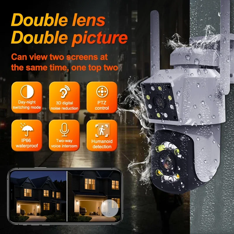 4K 8MP WiFi Surveillance Camera,AI Human Detect, Dual Lens, 4X Digital Zoom, Outdoor Security PTZ IP Cameras $28.48