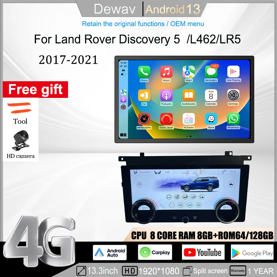 13.3 inch For 2017-2021 Land Rover Discovery 5 Multimedia player Radio Carplay Qualcomm Android screen air conditioner AC panel $932.03