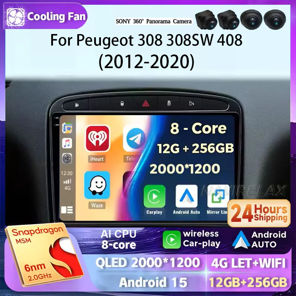 Android 15 Car Radio For Peugeot 308 308SW 408 2012 2013 2014 2015-2020 Carplay Auto Qualcomm Stereo Multimedia Player DSP 48EQ $92.74