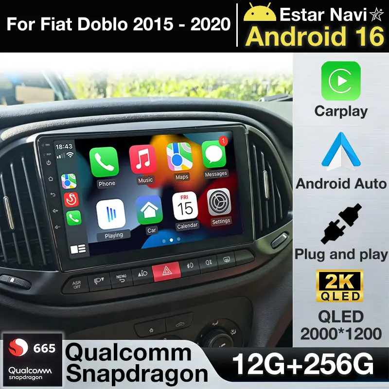 Android 16 Wireless Carplay Car Radio For Fiat Doblo 2015 2016 2017 2018 2019 2020 Multimedia Video Player GPS 4G Auto Stereo BT $133.43