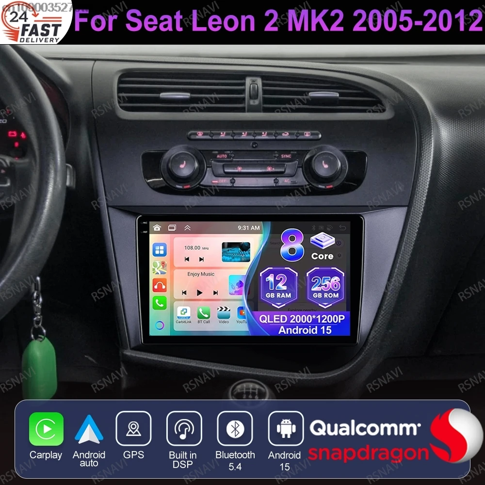 Android 15 For Seat Leon 2 MK2 2005-2012 Navigation Qualcomm GPS 4G LTE BT Head Unit DSP QLED Wireless Carplay Auto 5G WIFI DVD $80.07