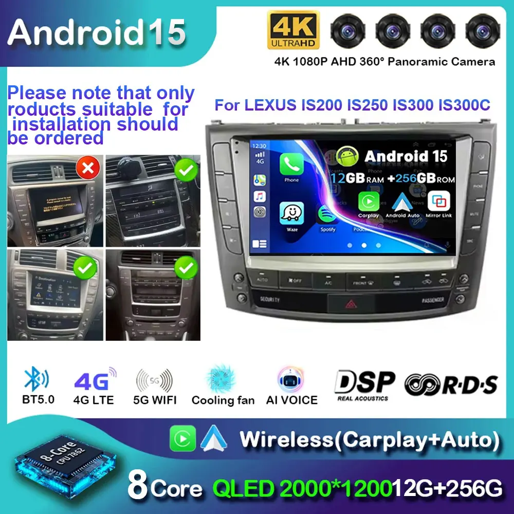 Android 15 Carplay WIFI+4G For Lexus IS250 IS300 IS200 IS220 IS350 2005 - 2012 Car Radio Multimedia Player Stereo DSP Head Unit $127.98