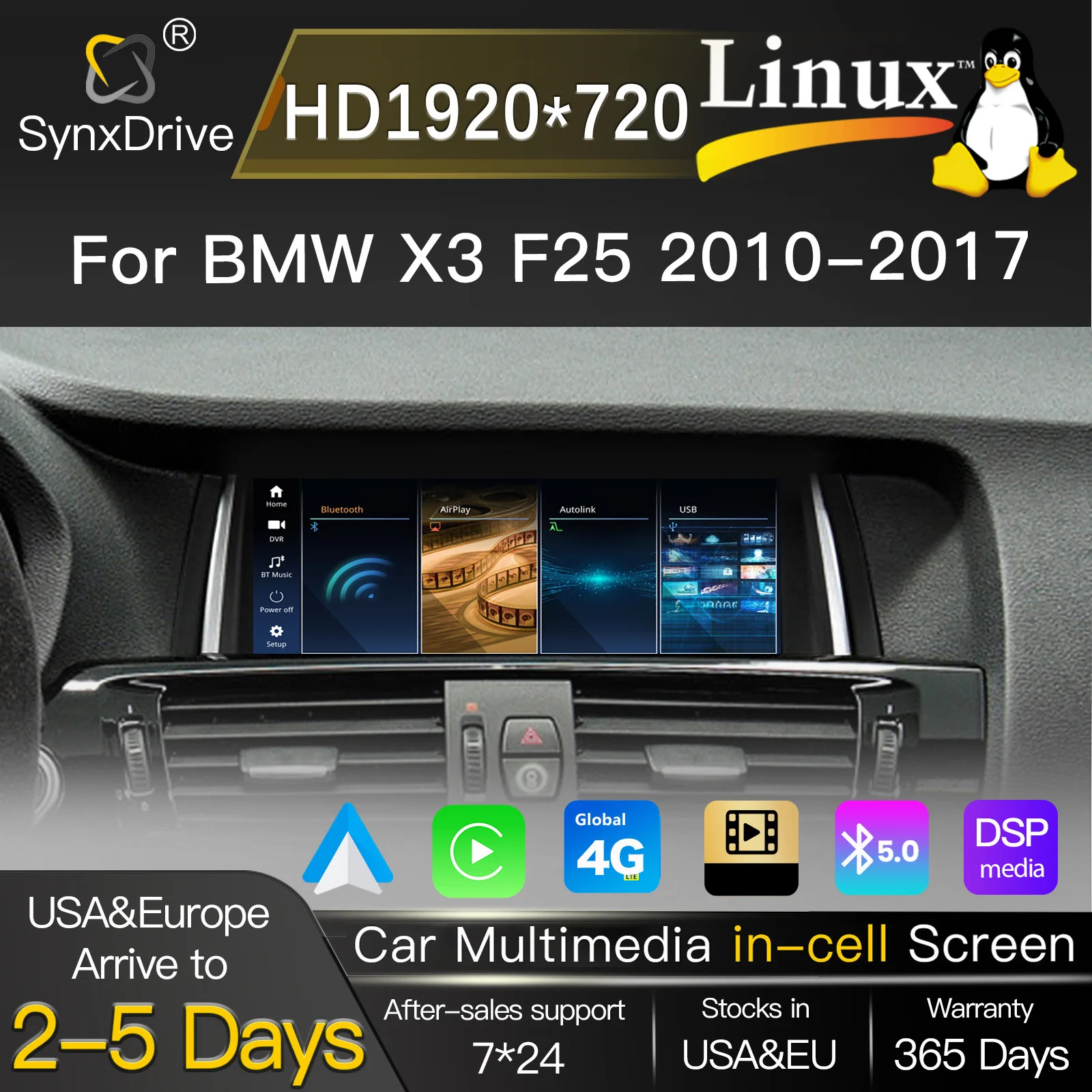 8.9“1920*720 Wireless Carplay Android Auto Radio For BMW X3 F25 X4 F26 Multimedia Audio Stereo Screen Head Unit GPS Navigation $184.43