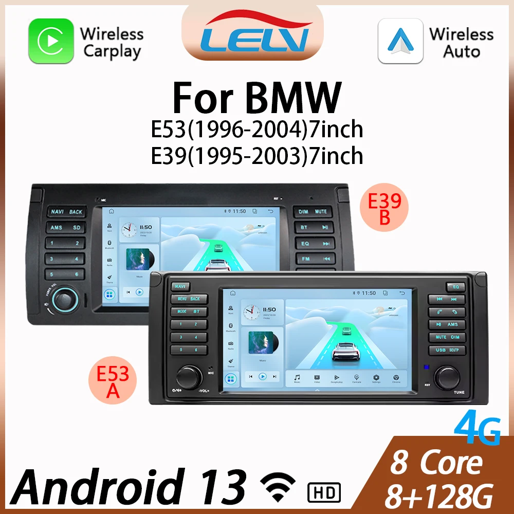 LELV 7'' Android 13 4G Bluetooth 5 HD Reversing GPS Navigation Built-in 8 Core 8G+128G Carplay for BMW E39 E53 Car Radio Player $168.83