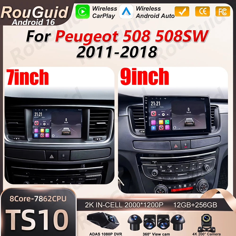 Android 16 Car Radio For Peugeot 508 508SW 2011 2012 2013 -2018 Wireless Carplay Video Multimedia Player Car Intelligent Systems $86.62