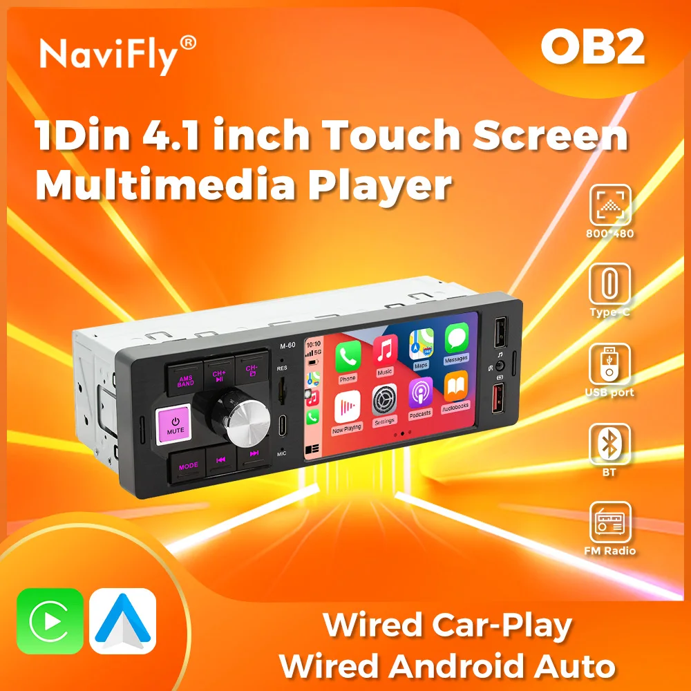 NaviFly 1Din 4.1inch Touch Screen Universal MP5 Wired Carplay Android Auto Car Radio Multimedia Video Player Color key light USB $31.99