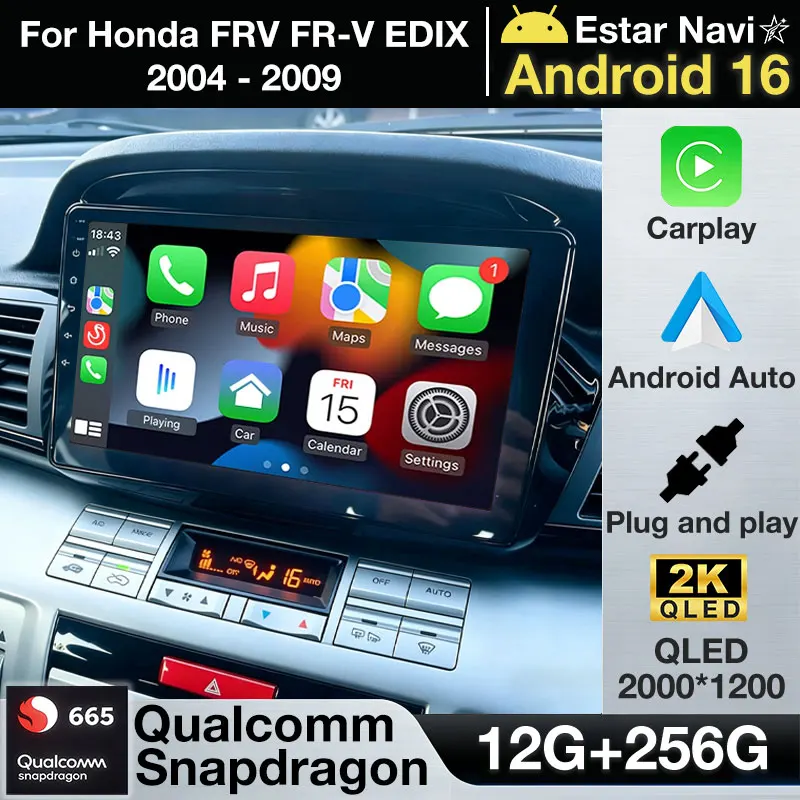 Android 16 Car Radio For Honda FRV FR-V EDIX 2004 - 2009 Wireless Carplay Android Auto GPS 4G BT Stereo Multimedia Video Player $126.92