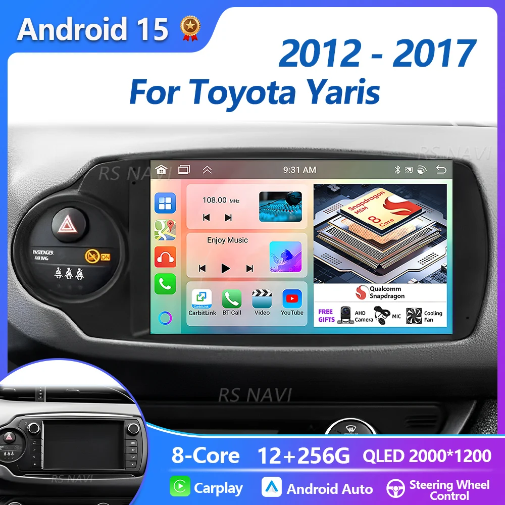 Plug and Play Android 15 Carplay 2K Car Radio For Toyota Yaris 2012 - 2017 Navigation GPS Multimedia Player stereo wifi BT Auto $93.12