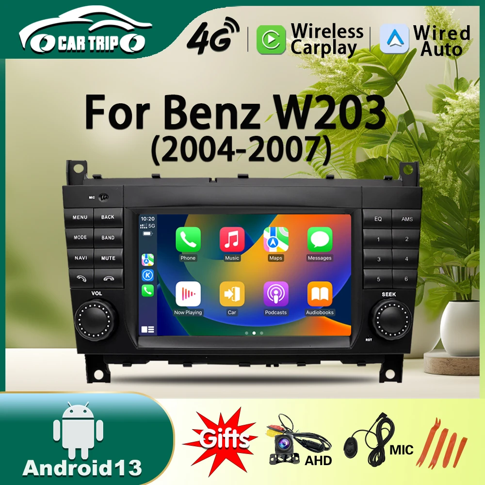 Android 13 Car Radio For Mercedes Benz C Class W203 GPS navigation Bluetooth Carplay Stereo Multimedia Video Player $107.30