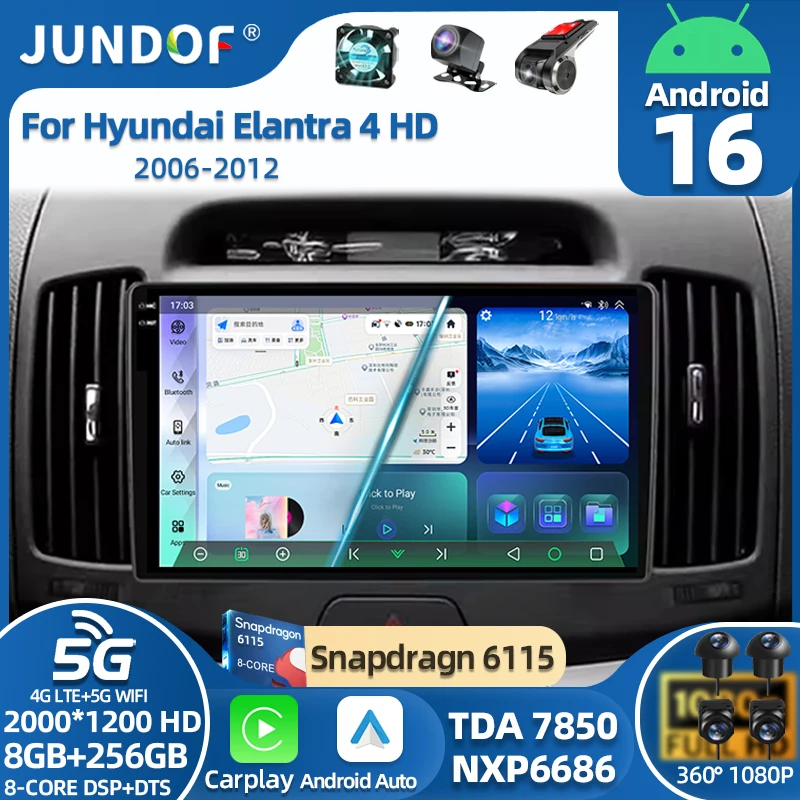 Android 16 Auto Radio For Hyundai Elantra 4 HD 2006-2012 GPS Multimedia Stereo Player Head Unit Carplay Support Steering Wheel $90.45