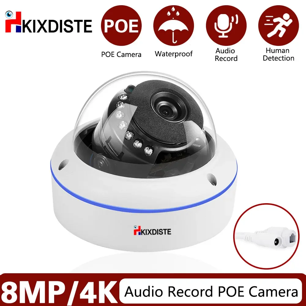 8MP 4K POE IP Camera Home Security Protection Audio Vandalproof Dome Night Vision 30m Surveillance Camera Support 10CH POE NVR $38.00