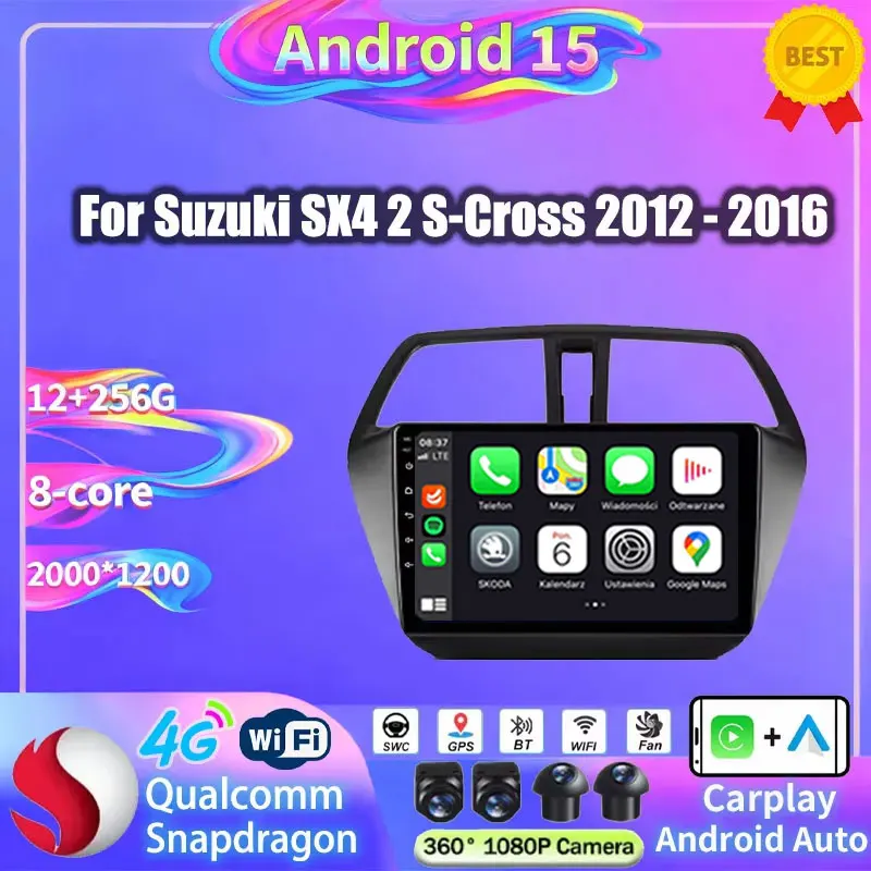 Wireless Carplay Auto For Suzuki SX4 2 S-Cross 2012 2013 20214 2015 2016 Android 15 Navigation Video Player Head Unit Octa Core $130.04