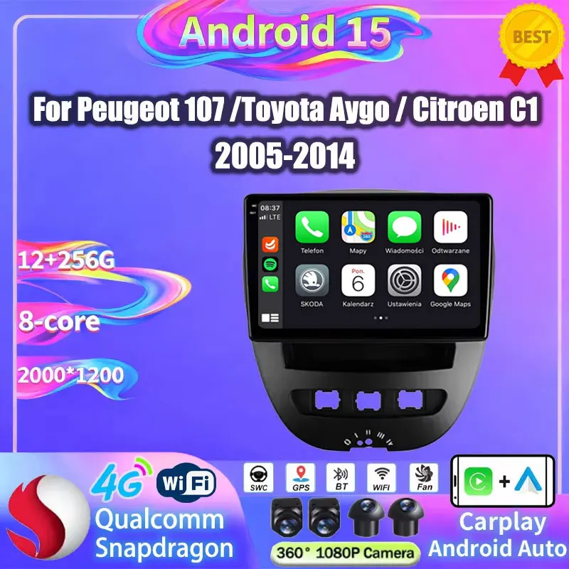 Android 15 Car Radio For Peugeot 107 Toyota Aygo Citroen C1 2005 - 2014 Multimedia Player BT DSP Wireless Carplay 2Din Head Unit $136.13