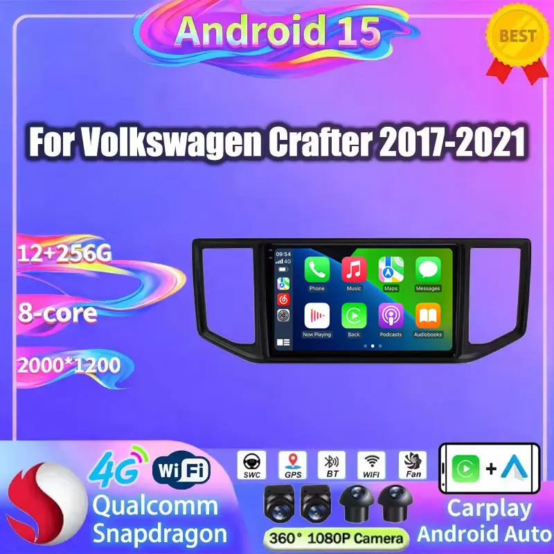 For VW Crafter Man Tge 2017 2018 2019 2020 2021 Android 15 Car Player Car Radio Multimedia Navigation Qualcomm Carplay Screen BT $136.45