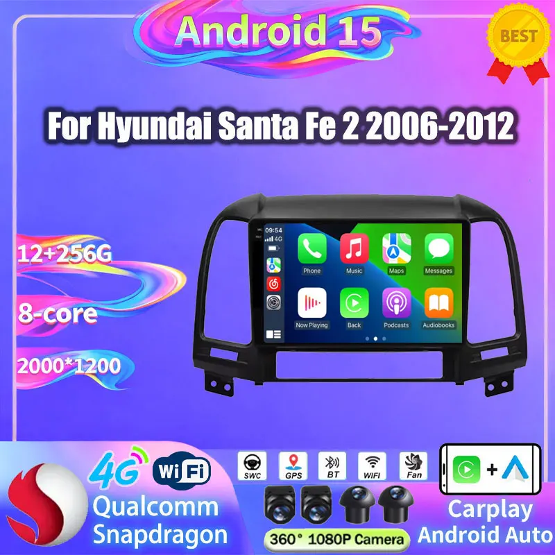 Android 15 Car Radio For Hyundai Santa Fe 2 2006-2012 Wireless Carplay Autoradio Stereo Player 2 Din Auto 4G GPS DSP Multimedia $130.04